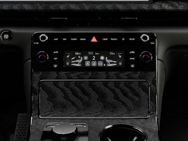 - Radio: AM/FM/HD Bang & Olufsen Sound System -inc: 1400 watts, 18 speakers, 14 channel amplifier, 27" integrated OLED instrument cluster and navigation system, SiriusXM Radio w/90-day subscription (not available in AK or HI), cloud connected platform (cloud profiles, connected routing, dynamic voice recognition, OTA updates), wireless Apple CarPlay, wireless Android Auto, Bluetooth® hands-free phone system w/audio streaming, wireless phone charger, Wi-Fi hotspot, steering wheel controls, USB, Genesis Connected Services, black anodized aluminum speaker grilles and Prestige Black-exclusive infotainment welcome screen/theme