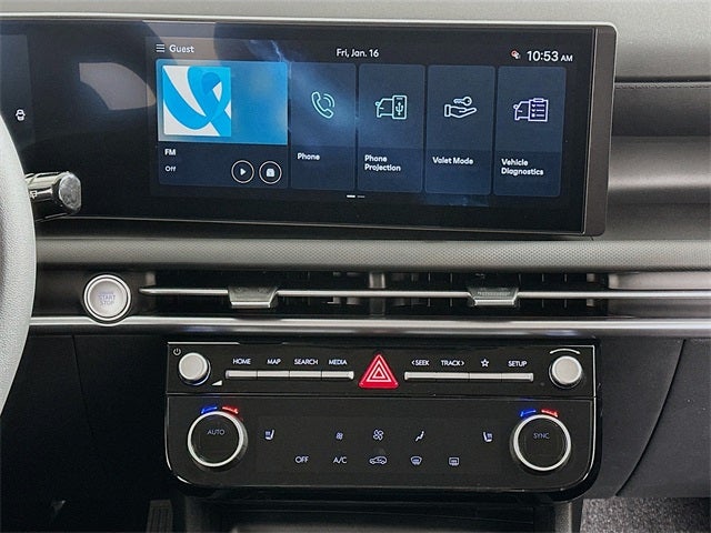 - Radio: AM/FM/HD Audio System -inc: 12.3" color touchscreen display, 6 speakers, SiriusXM satellite radio system (3-month trial subscription), wireless Apple CarPlay and Android Auto integration, controller OTA update capability, Blue Link connected car system and USB connectivity