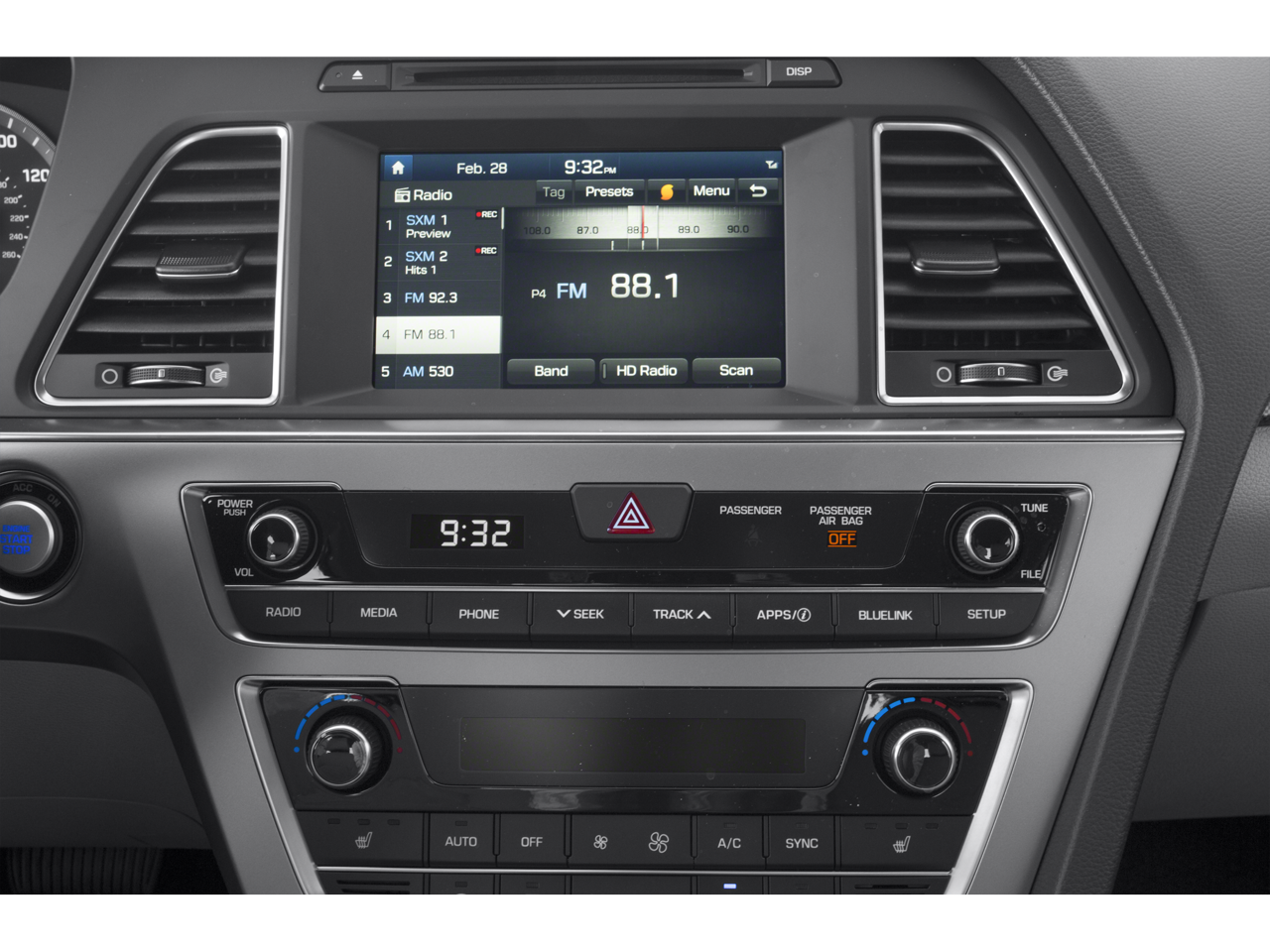 - Radio: AM/FM/SiriusXM/CD/MP3 Audio System -inc: iPod/USB and auxiliary inputs, 6 speakers (2 front-door-mounted, 2 tweeters, and 2 rear) and 5-inch color touchscreen