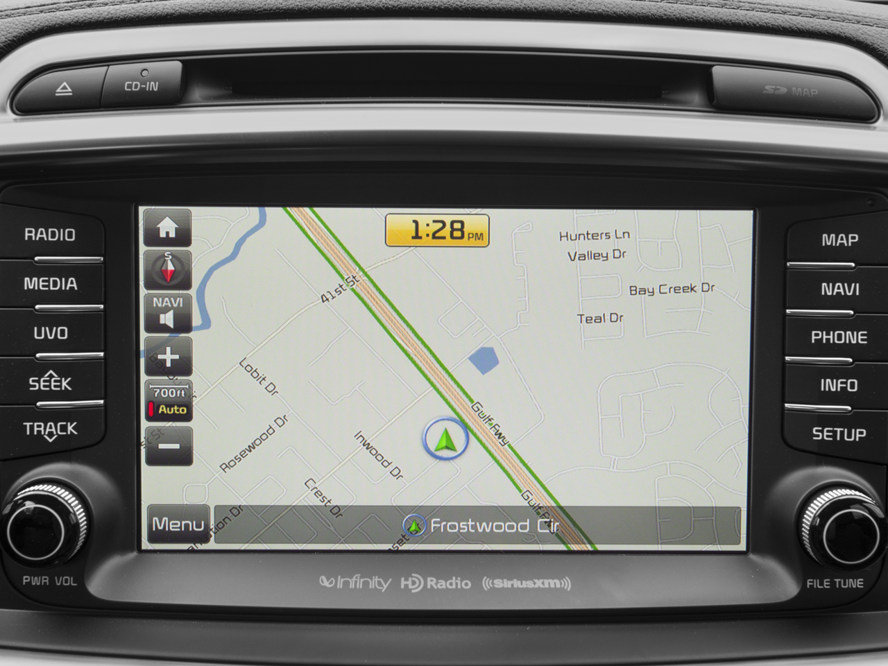 - Radio: UVO eServices w/Premium Navigation -inc: Infinity surround audio system w/Clari-Fi, 8" touch screen, Android Auto, Apple CarPlay, USB/Auxiliary input jacks, 2-rapid charge USB ports and Bluetooth® wireless technology