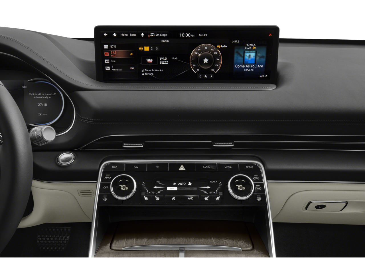 - Radio: AM/FM/SiriusXM/HD Audio System -inc: 12 speakers, 6-channel internal amplifier, integrated navigation, 14.5" HD LCD screen, Apple CarPlay and Android Auto, Bluetooth hands-free phone system w/audio streaming, steering wheel controls, USB and Genesis Connected Services