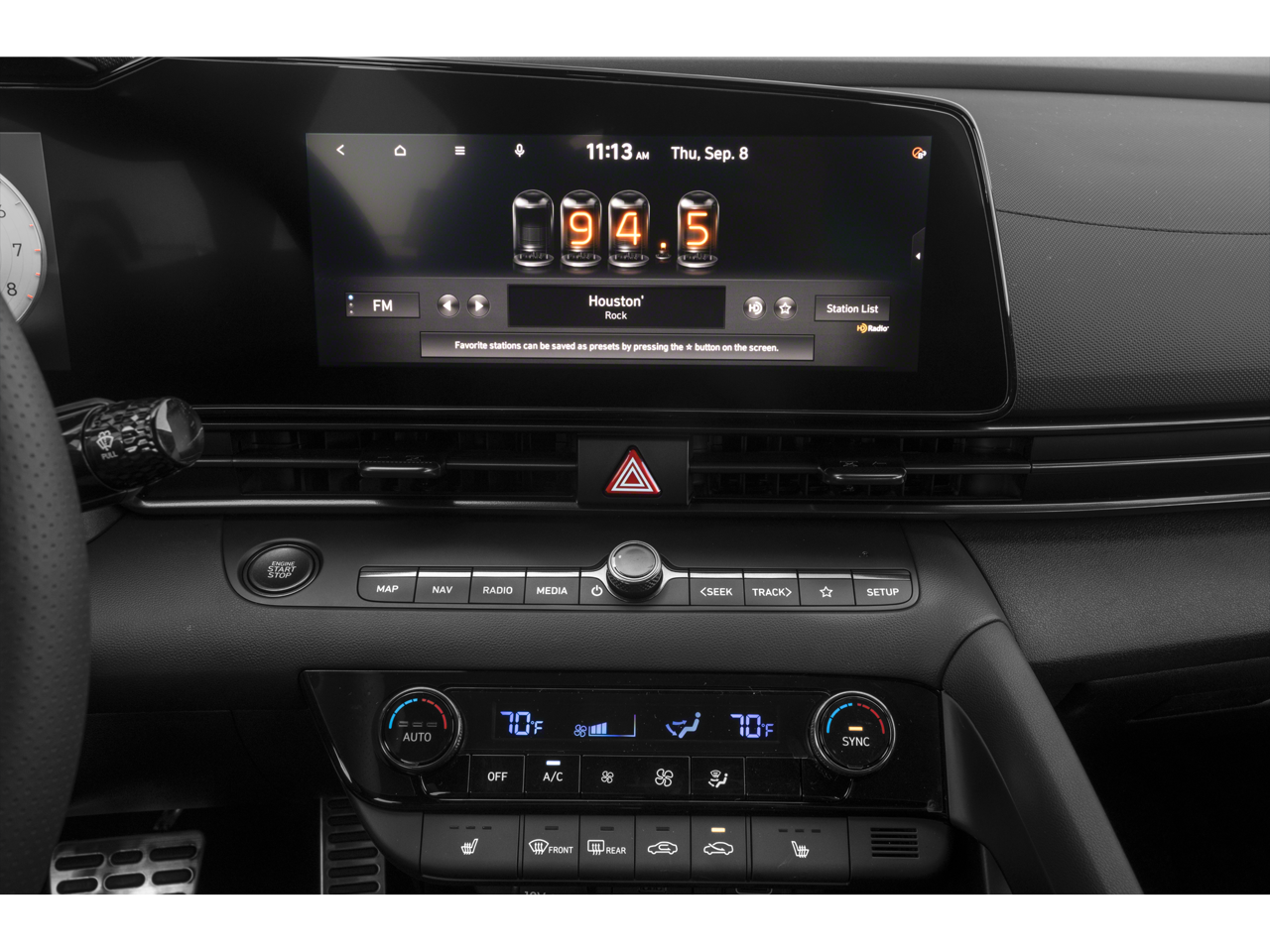 - Radio: AM/FM/HD/SiriusXM Display Audio -inc: 10.25" high resolution touchscreen display, navigation, SirusXM data services: NavTraffic, NavWeather, sports and stocks w/3-month trial, 6 speakers, Blue Link connected car system, wired Apple CarPlay and Android Auto, Bluetooth hands-free phone system w/voice recognition, USB ports, dynamic voice recognition and speed-sensitive automatic volume control